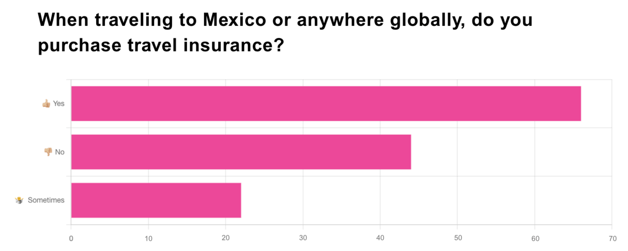Last week, we ran a little poll to see how many of you purchase travel insurance when you visit Mexico or anywhere else in the world. Here are the results!