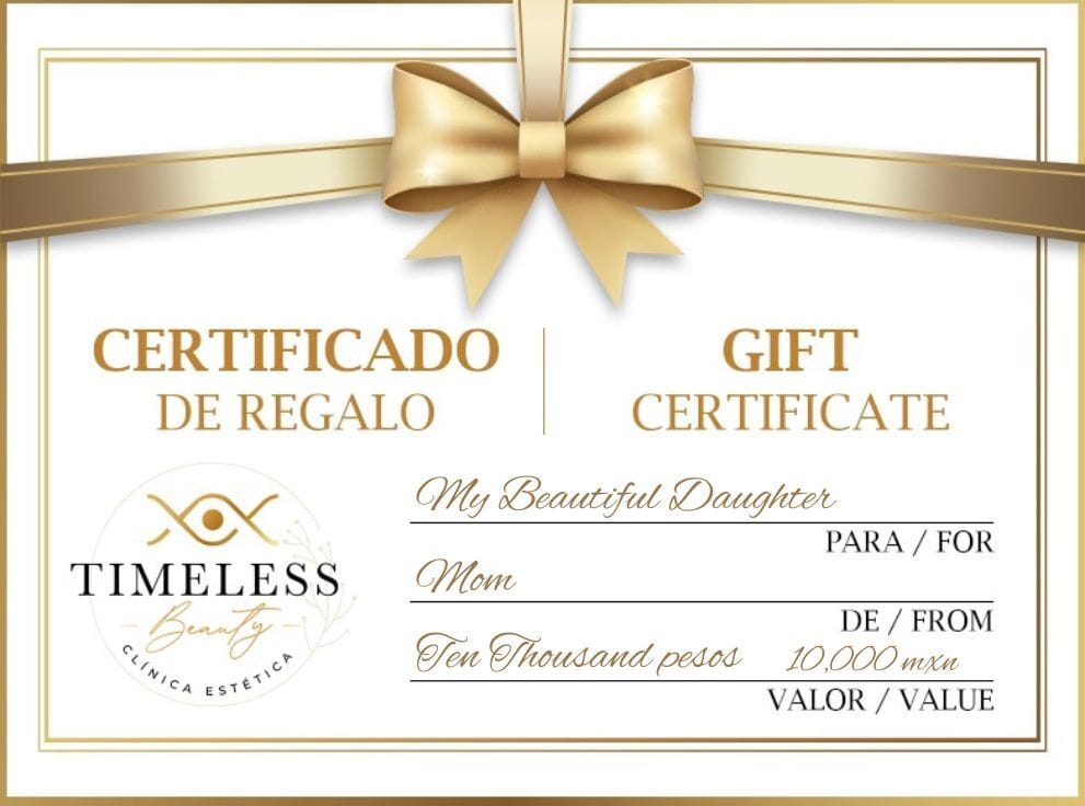 Gift Certificates are valid in both Timeless Beauty locations, Playa del Carmen and Puerto Aventuras. Perfect for your partner, your best friend, a work colleague—or even yourself. Whether you choose a subtle refresh or a full rejuvenation plan, every treatment with Dr. Luigi is personalized to look effortless and refined.