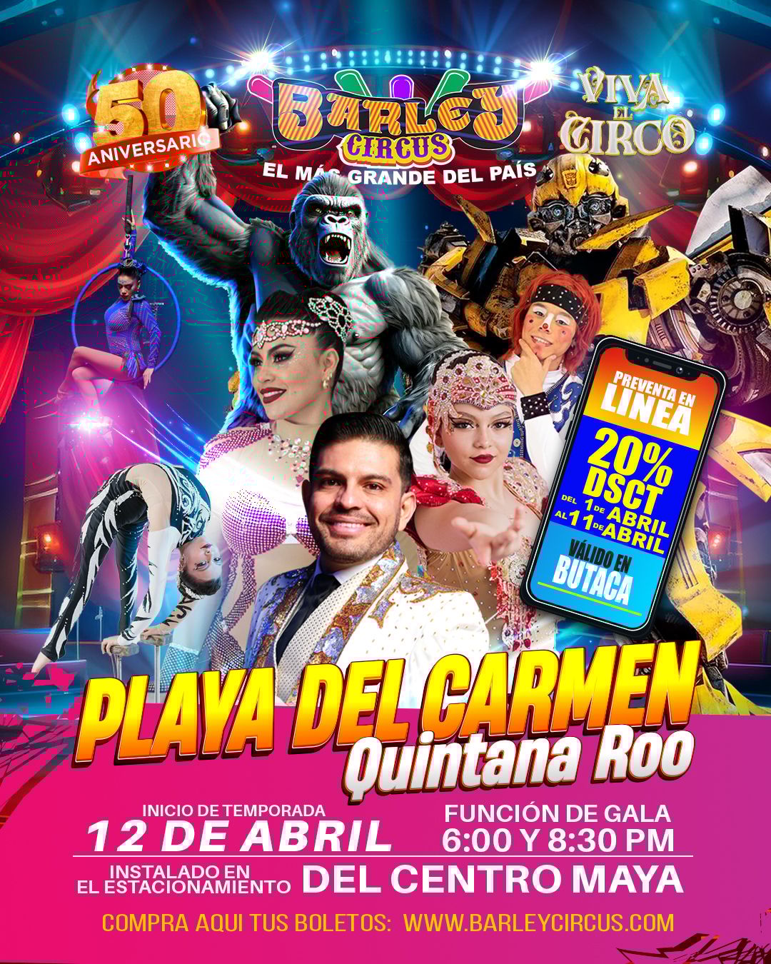 🎪 The legendary Barley Circus is back in Playa del Carmen for the first time in 26 years! This Mexico-based contemporary circus collective blends acrobatic artistry, aerial acts, clowning, and theatrical storytelling. Their performances are equal parts dazzling and thought-provoking, often touching on social and environmental themes. The gala opening day is set for April 12th with shows at 6PM and 8:30PM. The big top will be set up in the parking lot of Centro Maya.