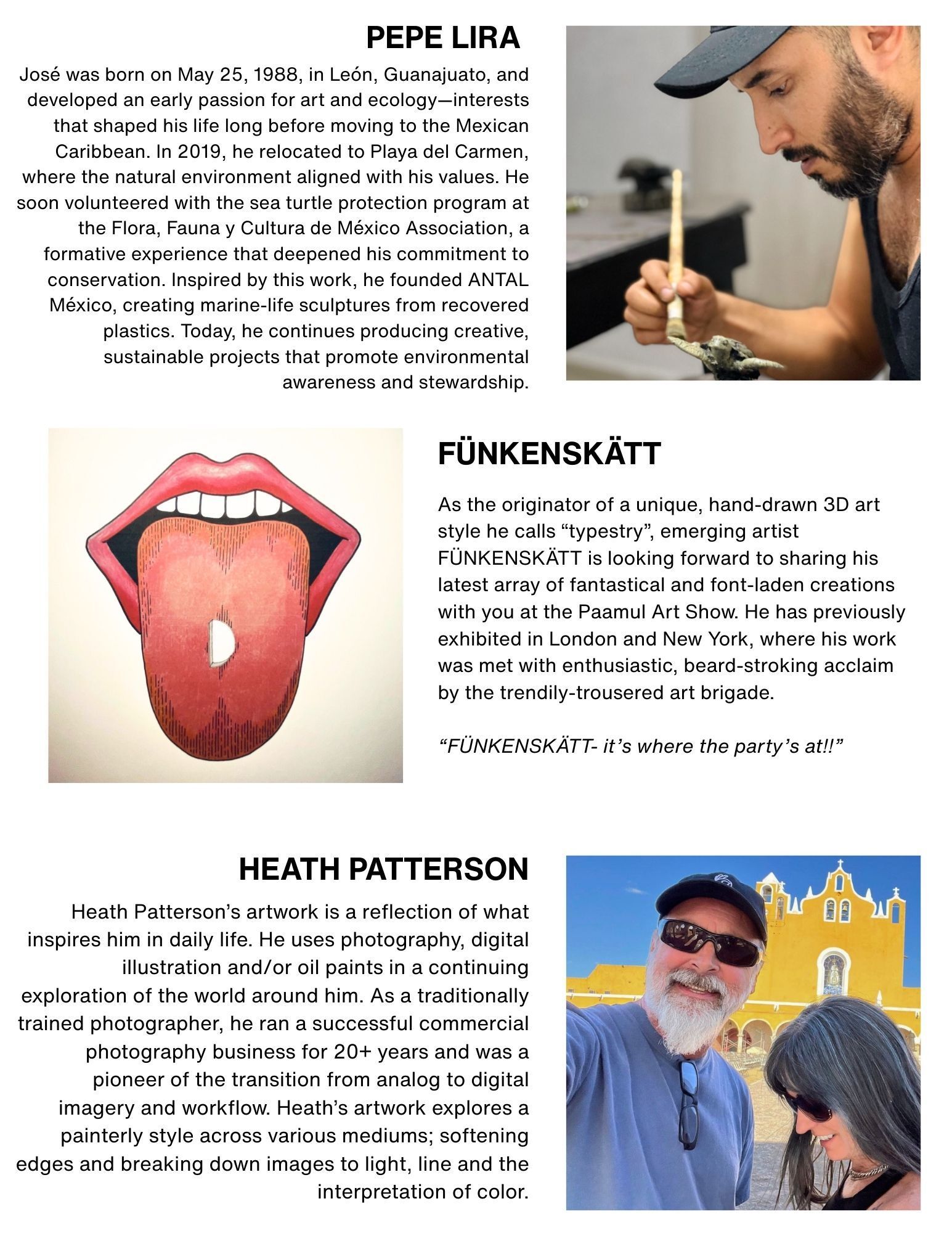 Más de 20 artistas locales de Paamul y de toda la Riviera Maya presentarán su trabajo: pintura, fotografía, escultura, cerámica y arte en técnicas mixtas. Los artistas de Paamul abrirán sus casas y estudios, mientras que varias residencias nuevas —cedidas generosamente por un desarrollador local— se transformarán en espacios de exhibición pop-up. Mientras recorres las diferentes sedes, podrás conocer a los creadores, escuchar las historias detrás de sus piezas y tener la oportunidad de adquirir arte verdaderamente original.